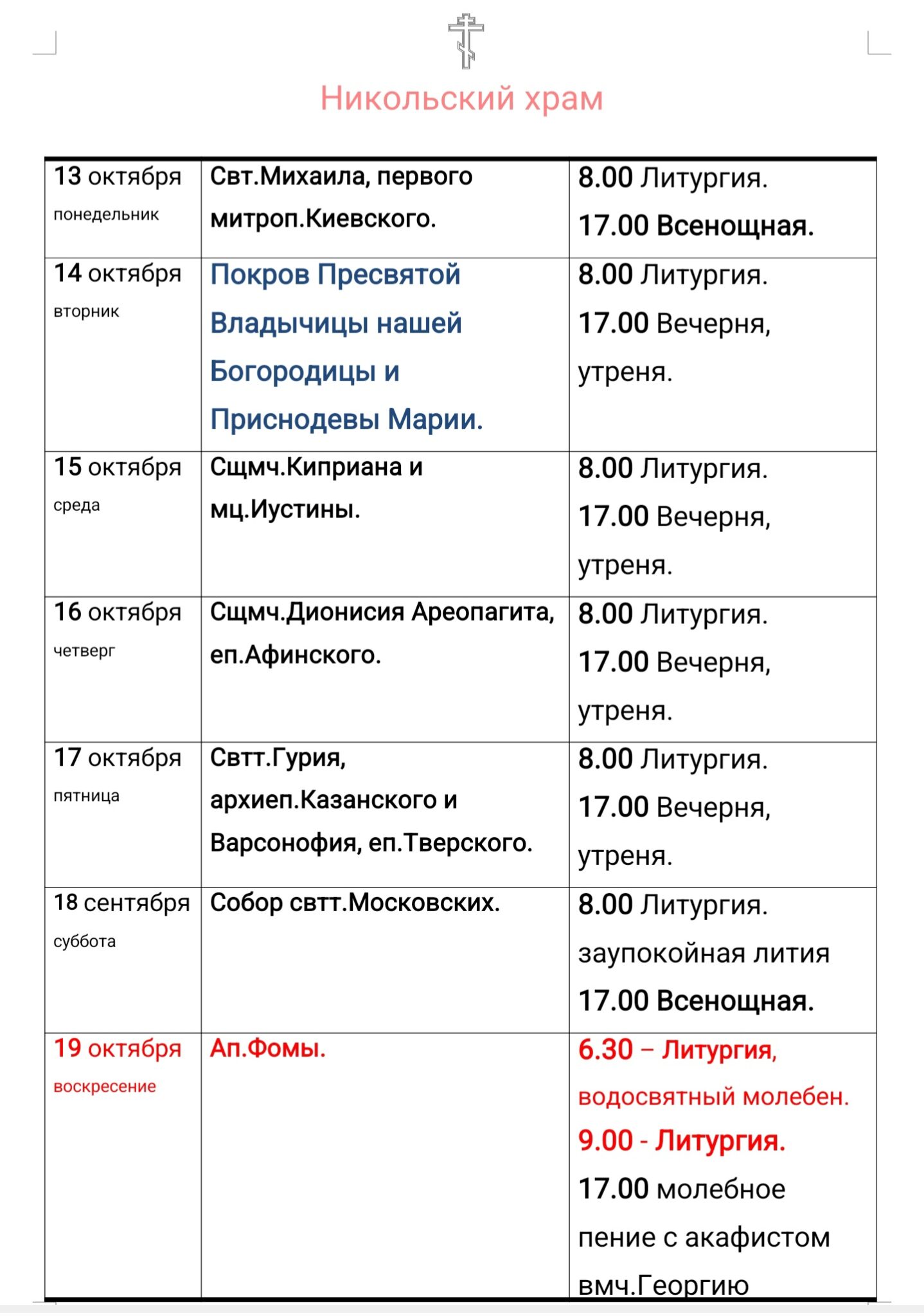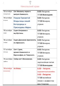 Расписание богослужений Богослужения в Никольском храме совершаются ежедневно Поделиться:TwitterВКонтактеОдноклассникиGoogle